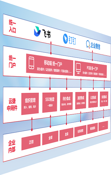 对协作平台提供支持服务,,,支持企业应用与协作平台对接,,,包含组织同步、、、消息集成、、、、待办集成等。。支持目前主流的协作平台:钉钉、、企微和飞书。。。